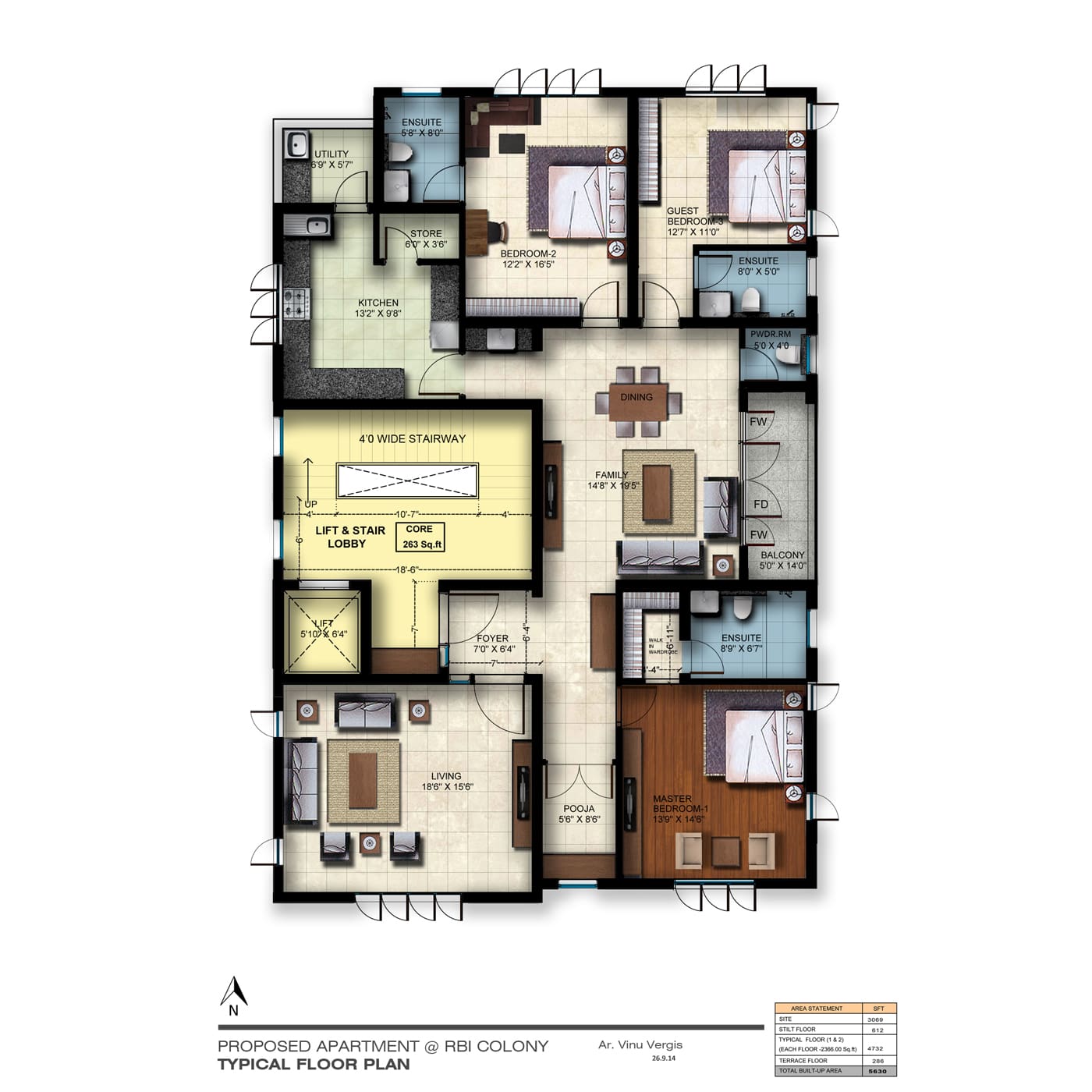 For safety, one ‘Earth Leakage Circuit Breaker’ (ELCB) for each apartment.