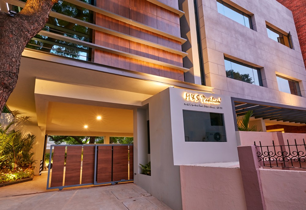 M&S 'Pavilion' is a commercial development comprising of two floors of office space with stilt car parking and roof top cafeteria. It is located at Spurtank road, Chennai. M&S ‘Pavilionʼ is a suitable destination for growing business.