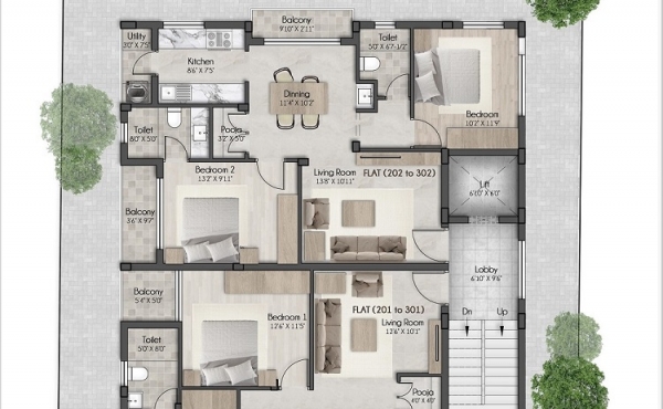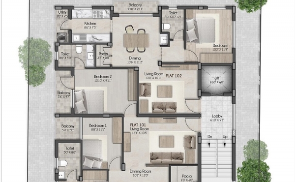 Each apartment will be provided with 5 KVA of Genset power, for lighting load of common areas and for lifts